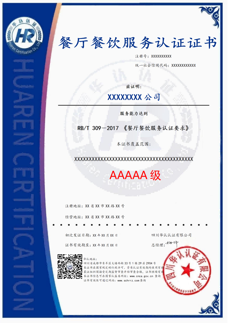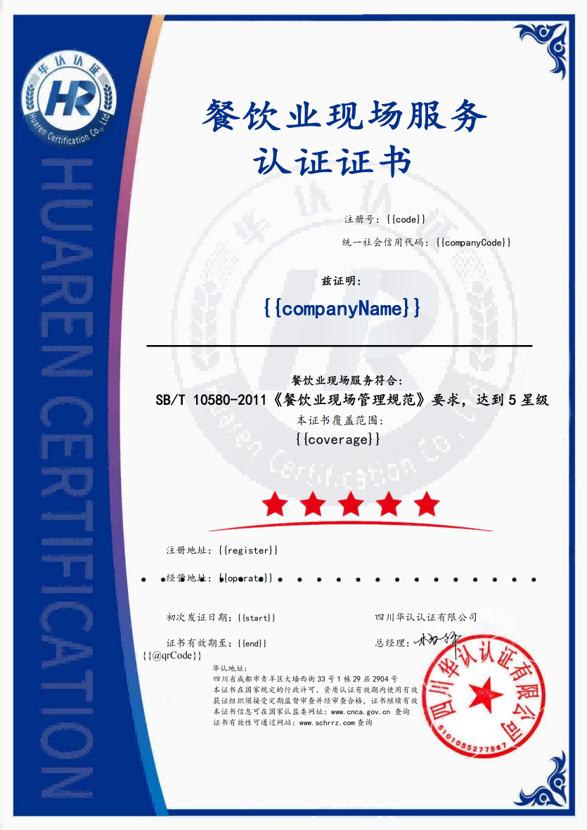 餐饮业现场服务认证证书
